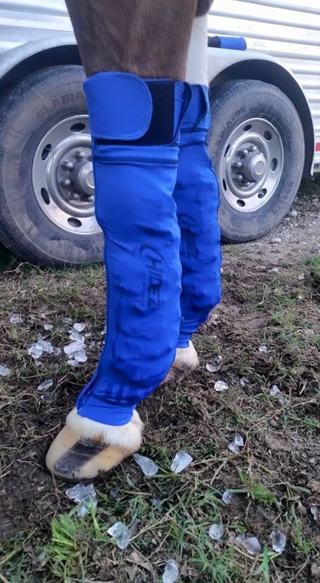 冷やしたい場所に氷を入れておくだけで足がきれいに冷えます。 氷が解けた水が、内側の布をツタうことにより、水冷よりも着実に冷えます。 馬がホースを外してしまう無限ループ、水がぬるくて冷えない、洗い場に立たせておくストレスの軽減など、いろんな問題解決になります。 前足、後ろ足をお選びください ※2脚セットです
